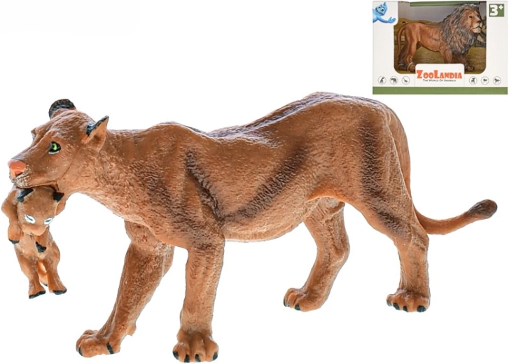 Figurine en plastique lion ou lionne avec petit ZOOLANDIA 13 cm