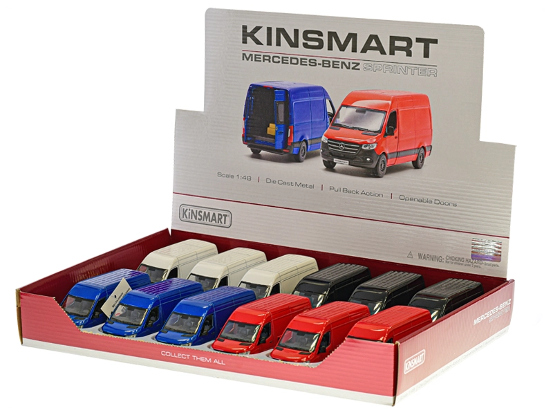 Modèle en métal finement détaillé de la fourgonnette Mercedes‑Benz Sprinter à l’échelle 1:48, idéal pour les enfants comme pour les collectionneurs. Il offre des portes ouvrantes, des proportions réalistes (12,5 × 5,5 × 5,5 cm) et un amusant mécanisme pull‑back pour avancer. Disponible en 4 couleurs, fabriqué dans une combinaison durable de métal et plastique, adapté à partir de 3 ans.