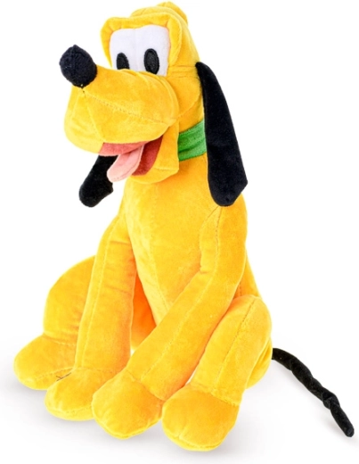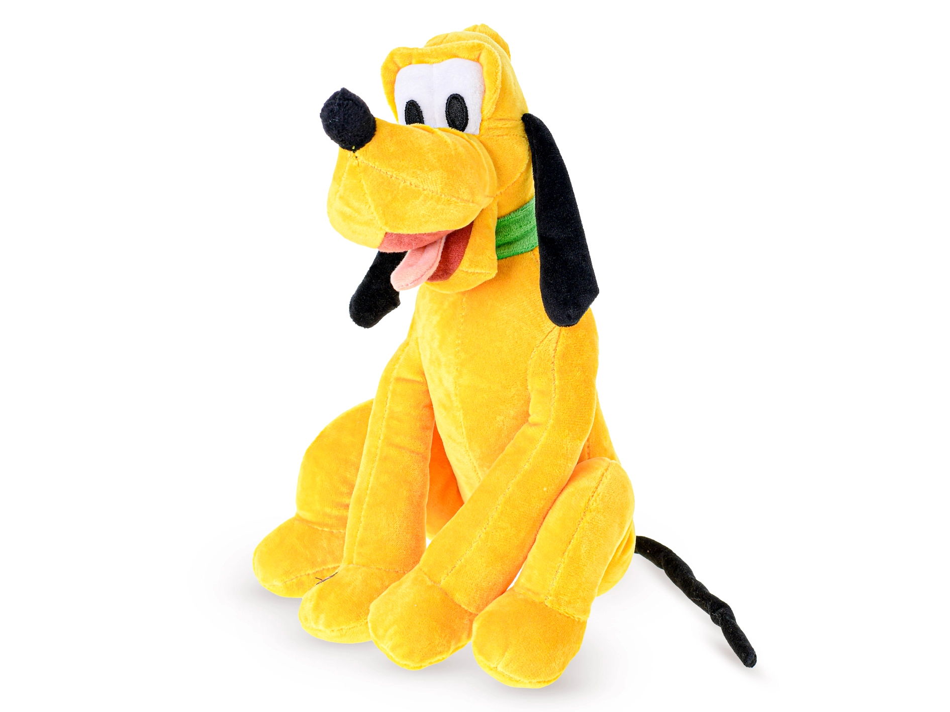 Adorable compagnon en peluche DISNEY Pluto en position assise qui fera plaisir à chaque enfant. Il mesure 30 cm et émet des sons amusants lorsqu’on appuie dessus. Idéal pour les enfants à partir de 12 mois et, grâce à sa matière douce, parfait pour les câlins et le jeu. Piles nécessaires pour la fonction sonore (non incluses).