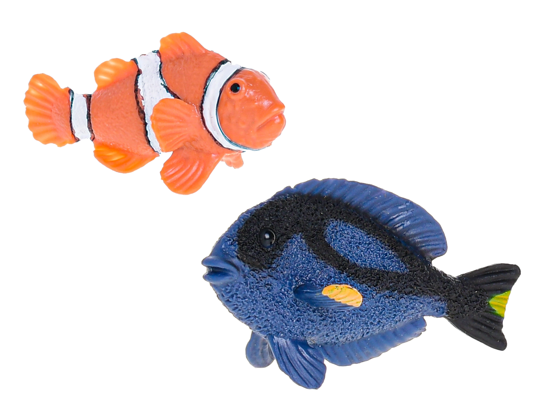 Trois variantes attrayantes au choix : poisson-clown, poisson-coq et petits requins. Les figurines sont livrées en boîte et se rangent facilement. Elles favorisent le développement de l’imagination, du vocabulaire et de la motricité fine des enfants.