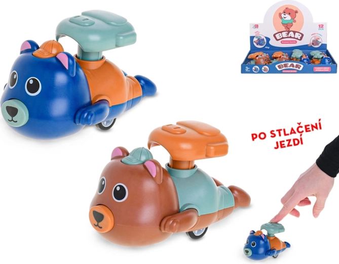 Adorable ourson roulant de 11 cm qui ravira chaque jeune enfant. En appuyant sur la partie supérieure, l’ourson avance tout seul grâce à un mécanisme mécanique sans piles. Fabriqué en plastique de qualité, résistant et disponible en deux couleurs – bleu et marron. Convient aux enfants dès 3 ans.