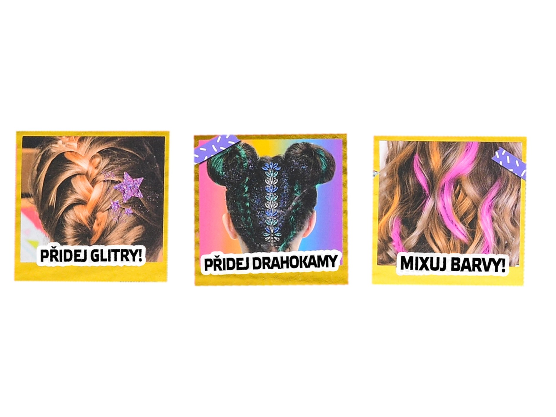 - Craies pour cheveux, strass, pochoirs, gel, paillettes