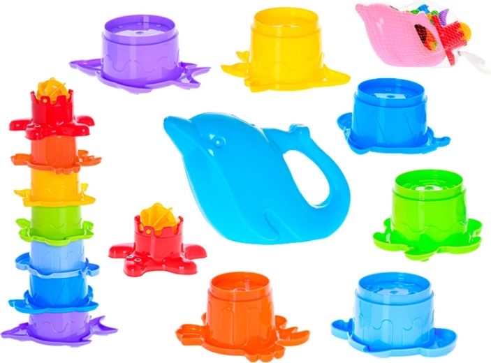 Ce set coloré ravira les petits explorateurs du monde du sable et de l’eau. La pyramide stable aux motifs marins amusants comporte 7 étages empilables permettant de verser du sable ou de l’eau et d’observer leur écoulement et la rotation. Un adorable arrosoir en forme de dauphin est inclus, rendant l’arrosage des pâtés ou la mise en mouvement des turbines encore plus amusants.