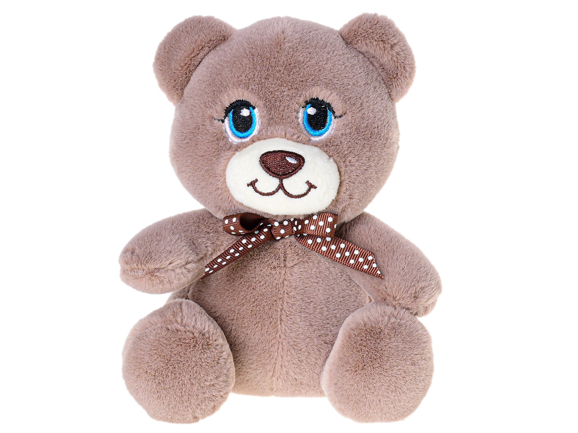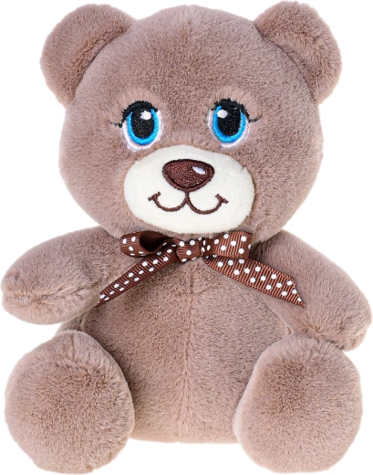 Adorable peluche de 15 cm, le compagnon idéal pour les bébés et les tout-petits. Grâce à son tissu peluche tout doux, son petit nœud brun autour du cou et ses grands yeux expressifs, elle invite aux câlins et procure un sentiment de sécurité et de joie.
