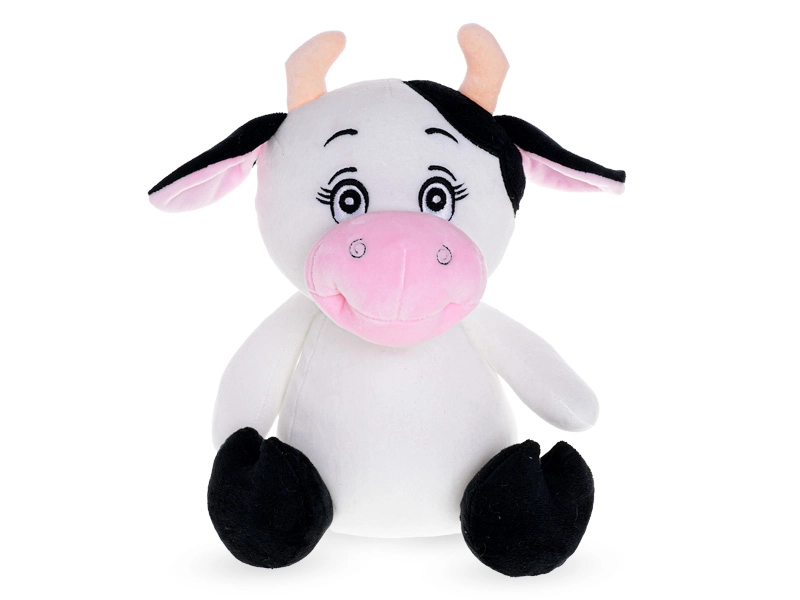Sa forme stable et assise permet de placer facilement la vache sur une étagère, une commode ou dans le lit comme adorable décoration.