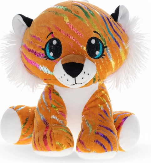 Le tigre en peluche STAR SPARKLE est un compagnon que les enfants adorent au premier toucher. Il est fabriqué en peluche douce, agréable et sûre même pour les tout‑petits. Sa position assise apporte stabilité et un look craquant, tandis que les détails arc‑en‑ciel scintillants soulignent son design féerique.