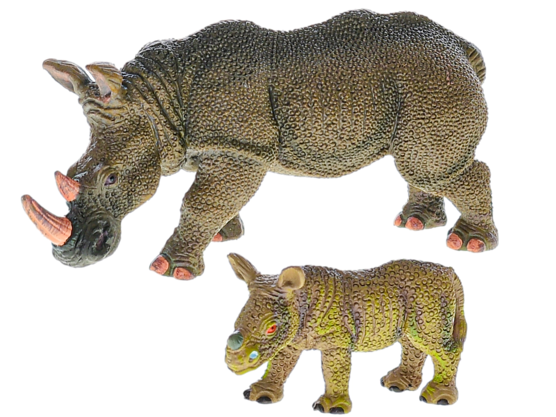 • Rendu réaliste – détails fidèles du rhinocéros adulte et de son petit