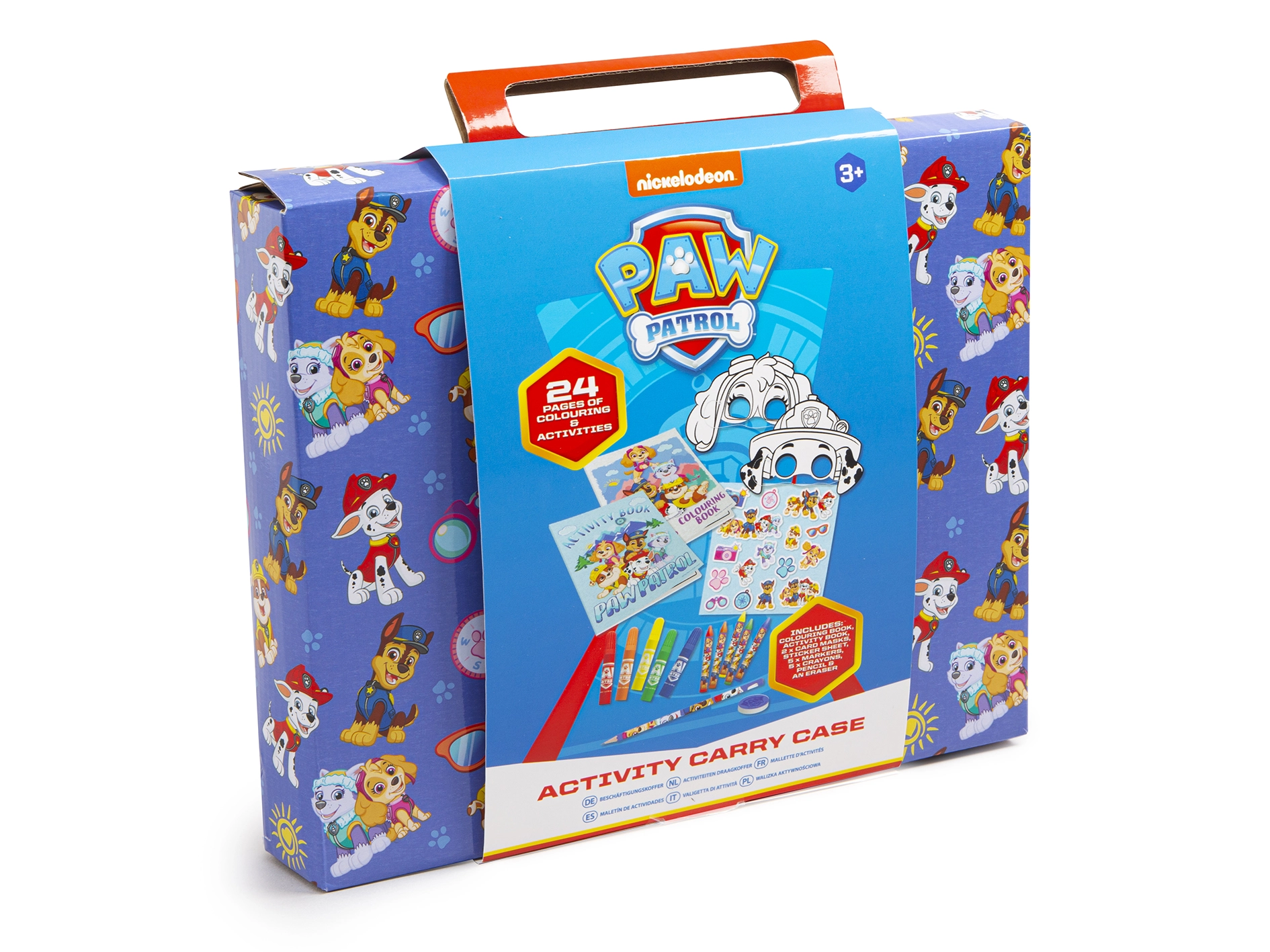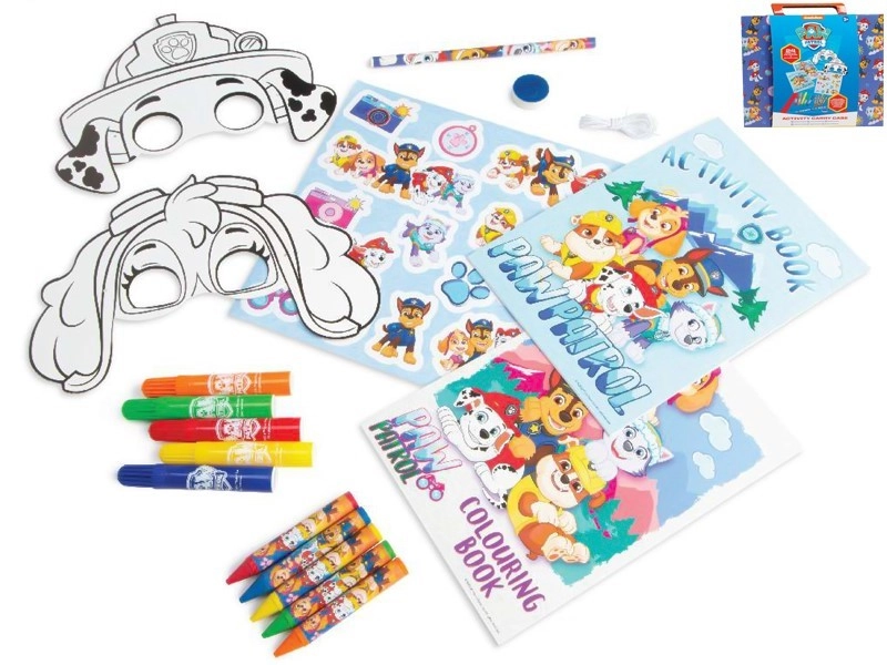 Découvrez le plaisir avec les héros de la série PAT’ PATROUILLE grâce à une pratique valisette créative. Les enfants profiteront de coloriages, activités, autocollants et masques à colorier, développant leur créativité et leur motricité fine. Sont inclus également des feutres, crayons cire, crayon à papier et gomme pour créer immédiatement à la maison comme en voyage.