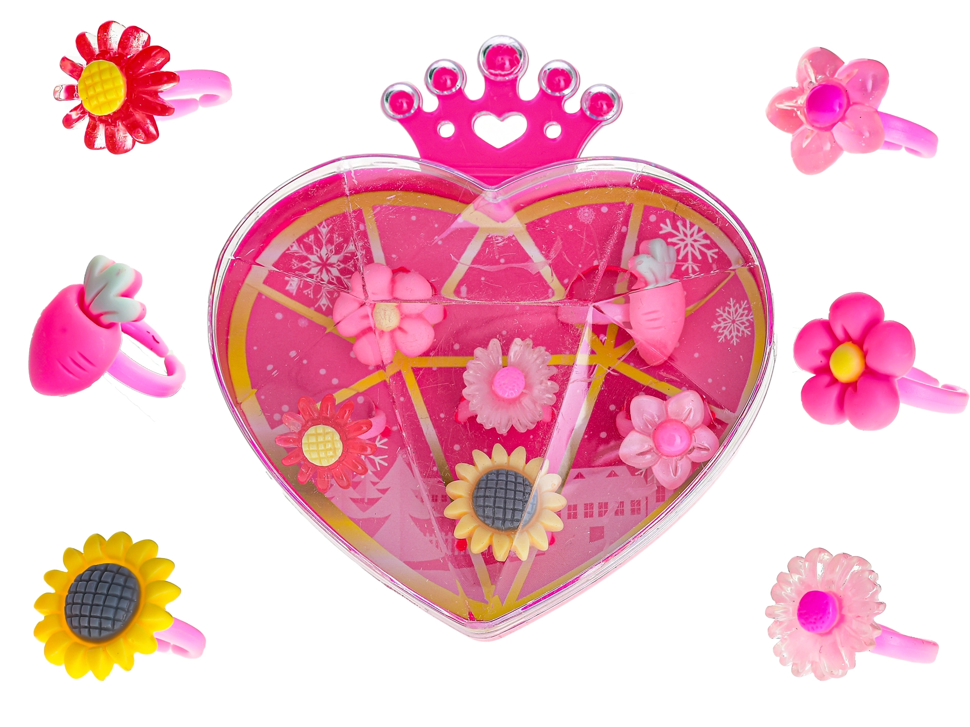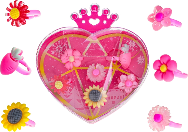 Adorable set de 6 bagues pour enfants dans une boîte en forme de cœur charmante, qui ravira chaque petite coquette. Les bagues en plastique léger sont ornées de motifs 3D colorés qui stimulent l’imagination et le jeu. Grâce au dos ouvert, elles ont une taille universelle et s’ajustent facilement aux petits doigts. Idéal pour les enfants à partir de 3 ans – à la maison comme en voyage.