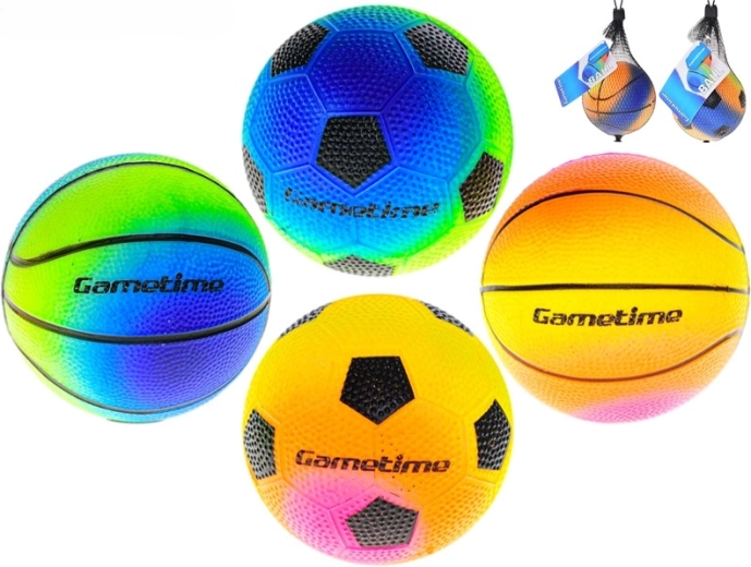 La balle arc‑en‑ciel GAMETIME de 10 cm de diamètre est la compagne idéale pour le divertissement quotidien. Grâce à sa construction légère et à son plastique résistant, elle supporte un jeu intensif tout en restant sûre pour les enfants à partir de 3 ans. Ses couleurs vives et ses motifs sportifs attirent l’attention et motivent à bouger.