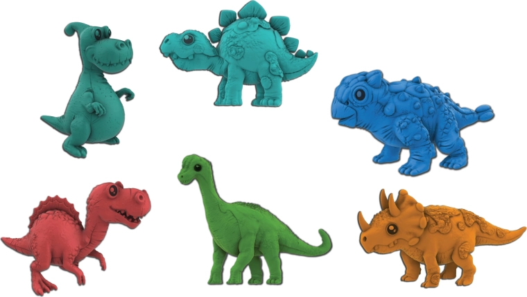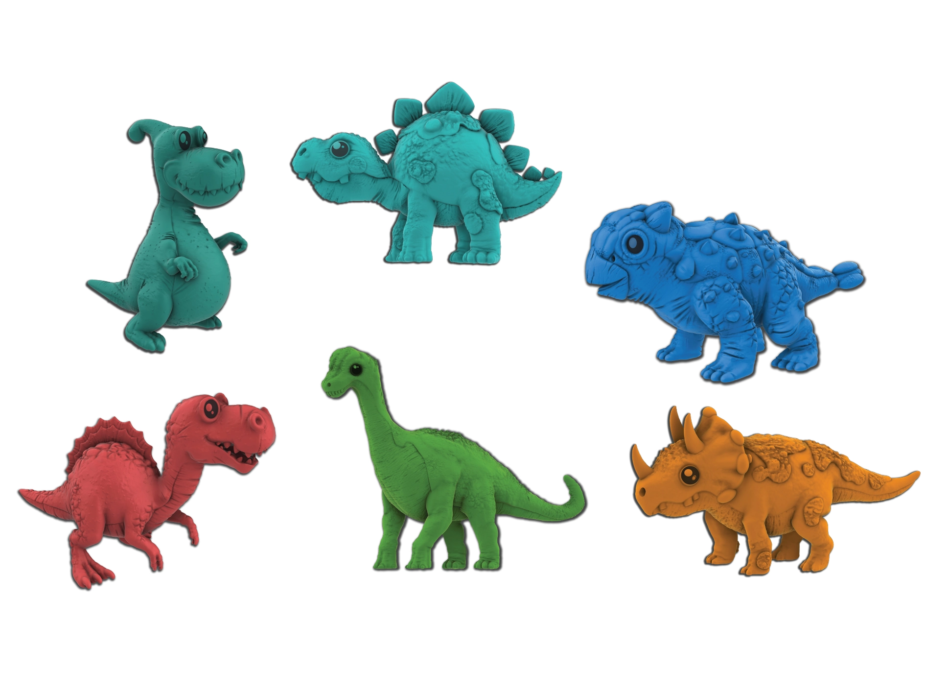 Les œufs sont disponibles en deux couleurs – rouge et orange – et renferment au hasard l’un des huit types de dinosaures : T‑Rex, Brontosaurus, Stegosaurus, Triceratops, Parasaurolophus, Ankylosaurus, Spinosaurus ou Plesiosaurus. Il est impossible de choisir à l’avance la couleur et l’espèce, ce qui garantit un effet de surprise à chaque achat.
