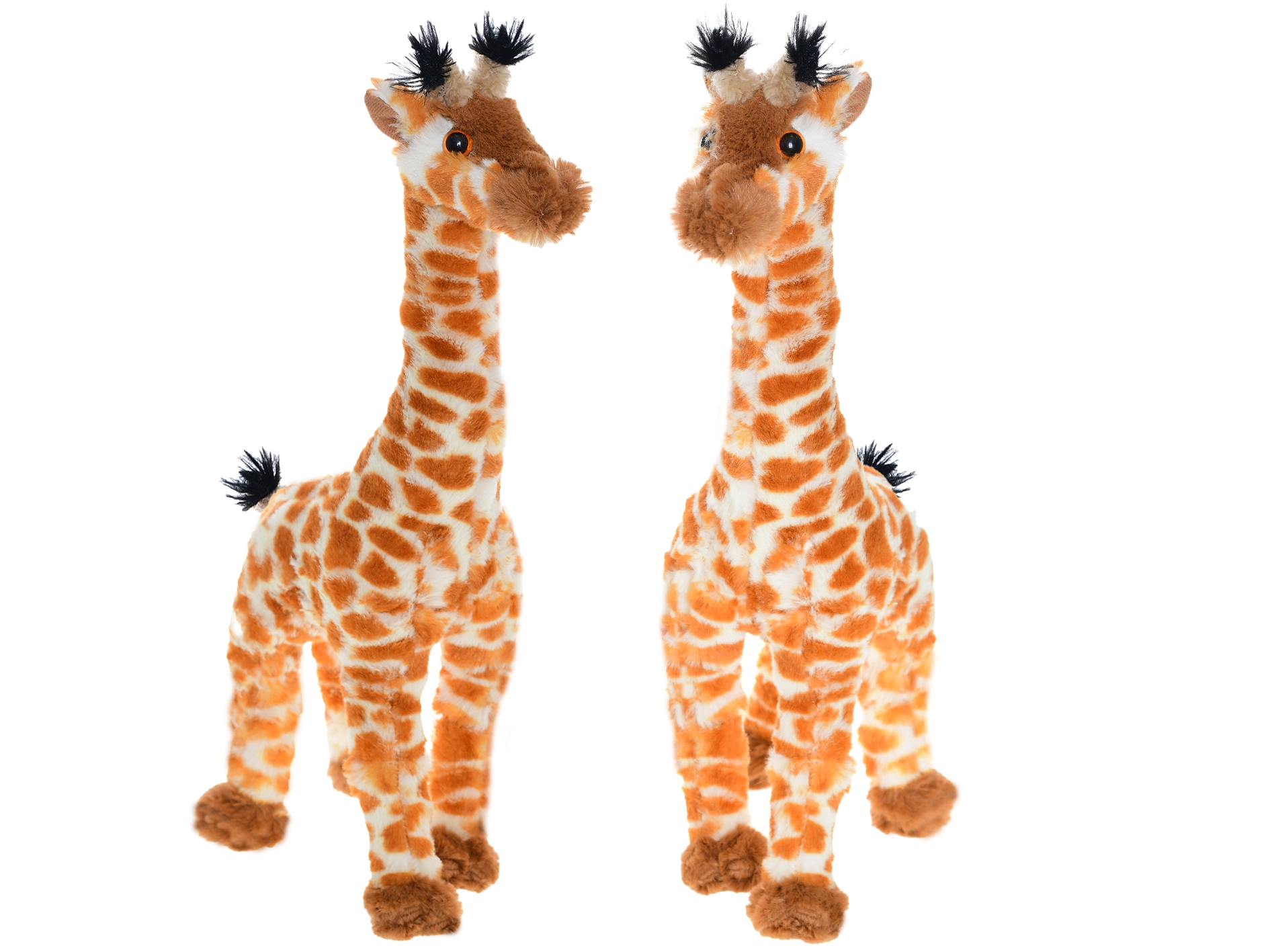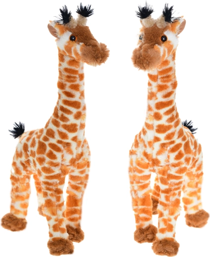 Adorable girafe en peluche de 40 cm, compagnon idéal pour les enfants dès la naissance. Elle offre une surface douce et moelleuse, une finition réaliste et une conception sûre pour les tout-petits. Le rembourrage en bouteilles PET recyclées est respectueux de la nature et certifié sûr, pour un confort optimal et un choix écoresponsable.