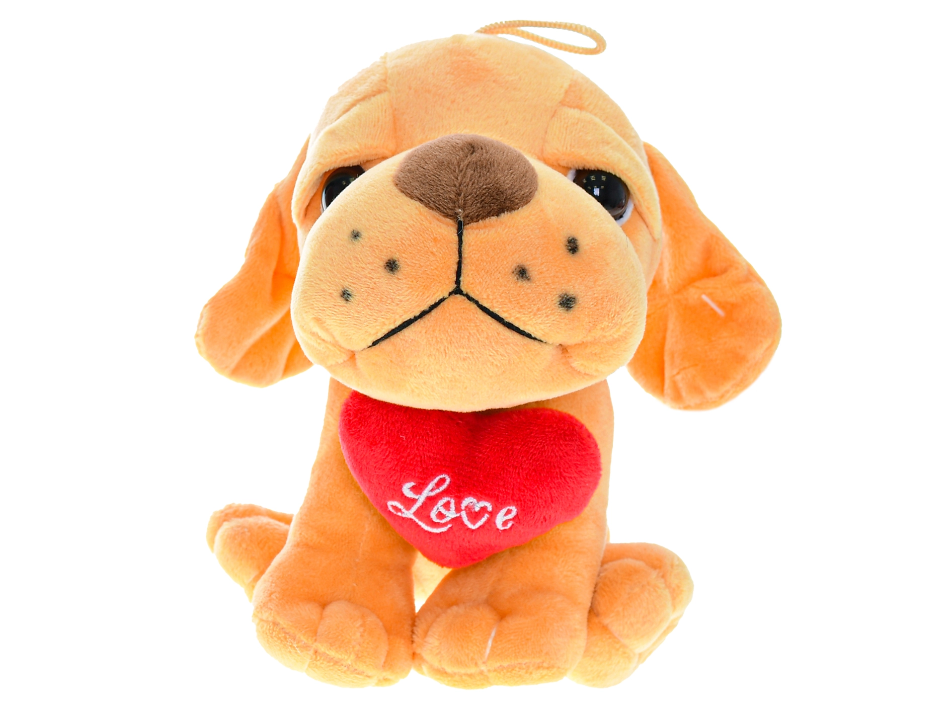 Le chien tient un adorable petit cœur avec l’inscription Love, ce qui en fait un cadeau original pour les amoureux, pour un anniversaire ou pour la Saint-Valentin. Trois couleurs populaires sont disponibles – marron clair, jaune et gris – afin de choisir exactement celle qui fera plaisir.