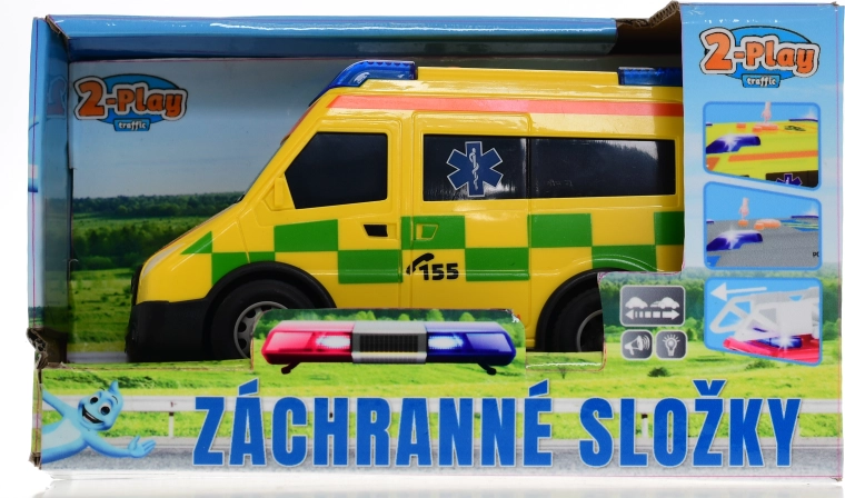 Ambulance 2-Play Traffic au design tchèque, finement détaillée, qui ravira les petits secouristes. Elle offre des effets lumineux et sonores réalistes, une roue libre pour une conduite fluide et un format compact de 13,5 cm, idéal pour les mains des enfants. Fabriquée en plastique de qualité, adaptée dès 3 ans et prête à jouer grâce aux 3× piles LR44 incluses.