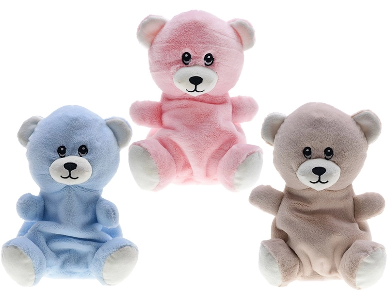 Vous pouvez choisir parmi trois couleurs populaires – beige, rose et bleu. L’ours est fabriqué en peluche douce, agréable au toucher et facile à entretenir pour une hygiène quotidienne.