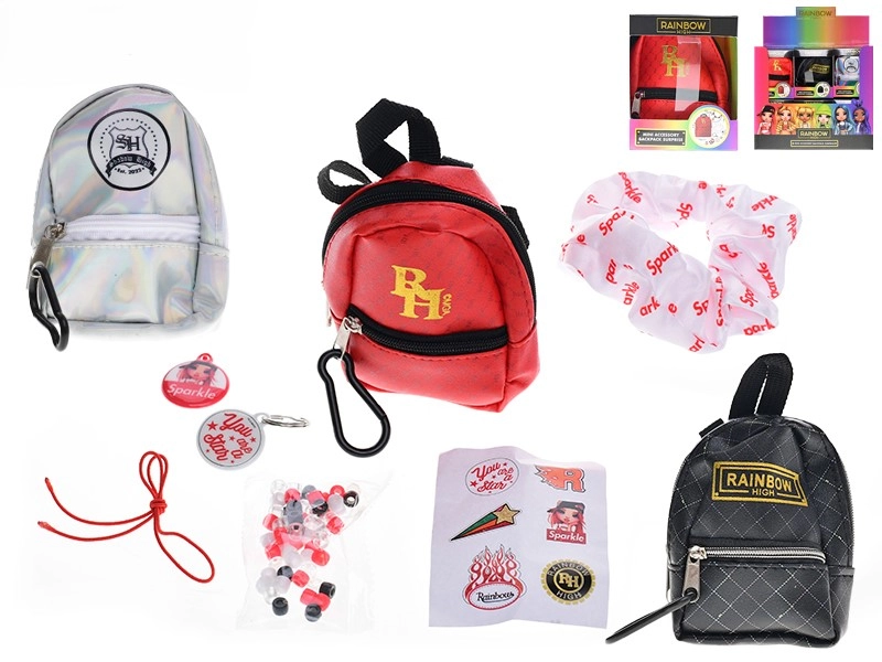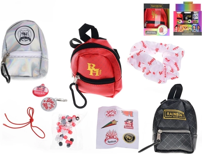 - mini sac à dos, chouchou, perles colorées, pendentifs avec le logo RAINBOW HIGH