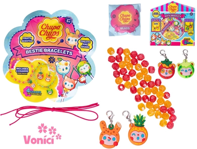 Découvrez les bracelets d’amitié CHUPA CHUPS parfumés amusants et créatifs pour les enfants dès 5 ans. L’emballage contient 2 bracelets légers en plastique avec des breloques que les enfants peuvent assembler selon leur imagination. Chaque bracelet dégage un parfum agréable, ce qui en fait non seulement un accessoire stylé, mais aussi une expérience sensorielle. Idéal pour développer la créativité et la motricité fine et parfait à partager avec un ami ou un frère/une sœur.