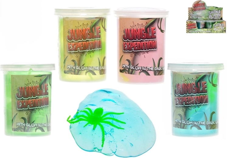 Le slime lumineux Jungle Expedition avec araignée est un excellent choix pour les petits explorateurs. À l'intérieur de la pâte colorée se cache une petite araignée qui, une fois exposée à la lumière, brille dans le noir et ajoute une atmosphère mystérieuse au jeu. Grâce au gobelet transparent compact, le slime est facile à transporter et toujours prêt à jouer à la maison comme en déplacement.