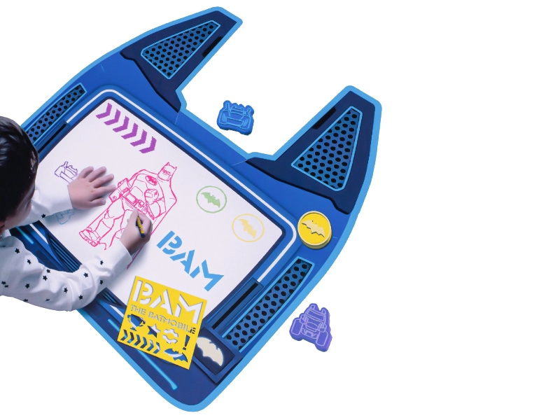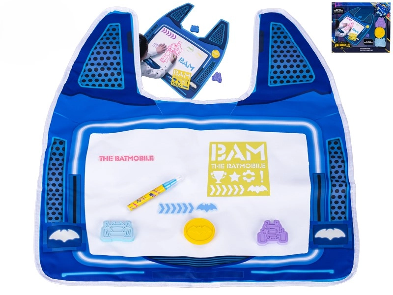 Découvrez la magie du dessin à l’eau avec le set thématique BATWHEELS. Les enfants peuvent créer des images avec des tampons aux motifs comme la Batmobile et le logo de Batman, et grâce au tapis spécial en forme de Batcomputer, tout apparaît puis disparaît après séchage. Aucun désordre, juste du plaisir – une activité idéale à la maison comme en voyage.