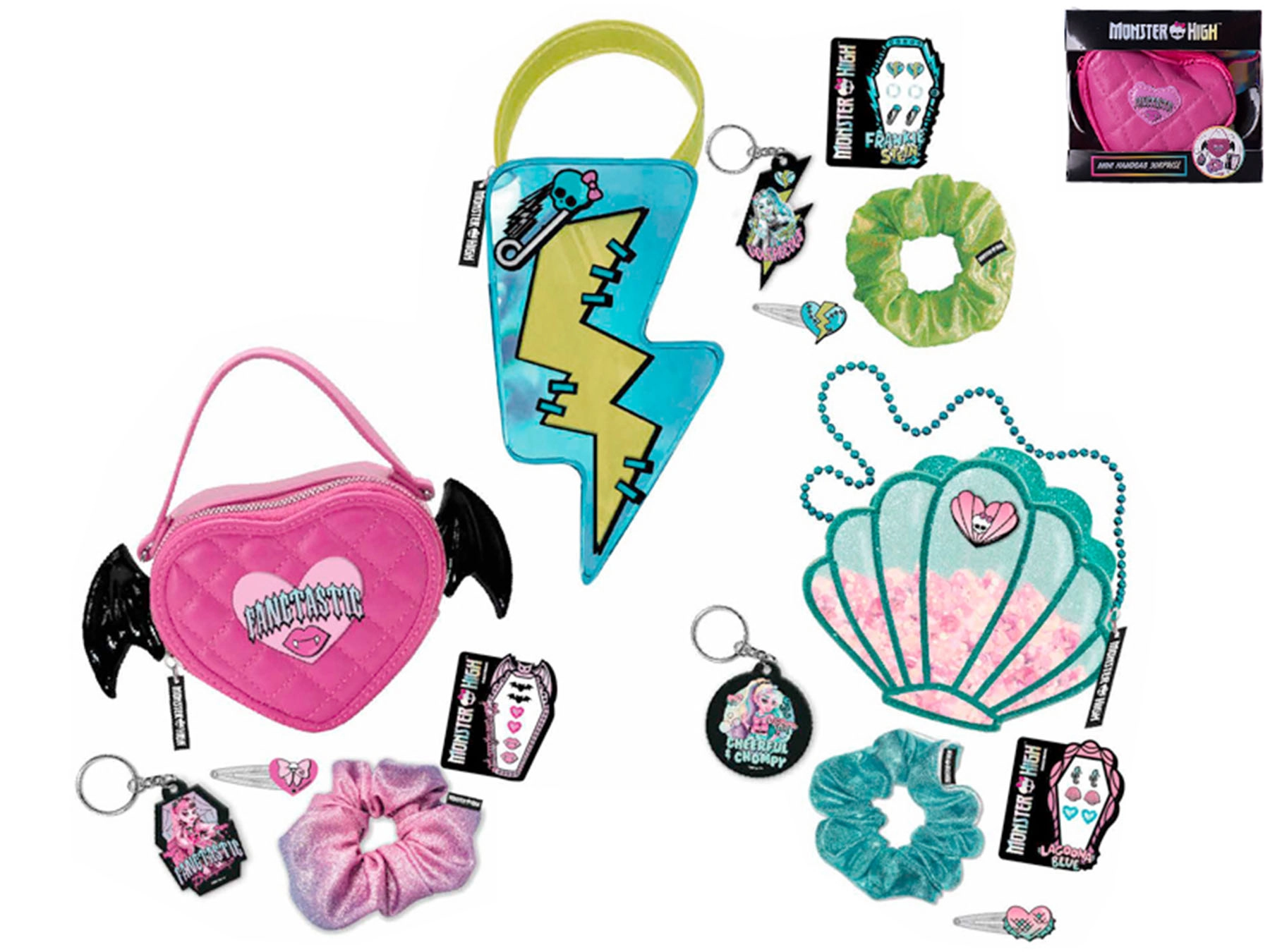 Un mini sac à main stylé pour les petits fans de MONSTER HIGH qui allie fun et touche mode. Disponible en trois designs – coquillage, éclair et cœur – chaque variante comprend des accessoires thématiques comme des porte-clés et des ornements pour les cheveux. Grâce à ses dimensions compactes, il est parfait pour jouer, collectionner et porter. Fabriqué en plastique de qualité, convient aux enfants à partir de 5 ans.