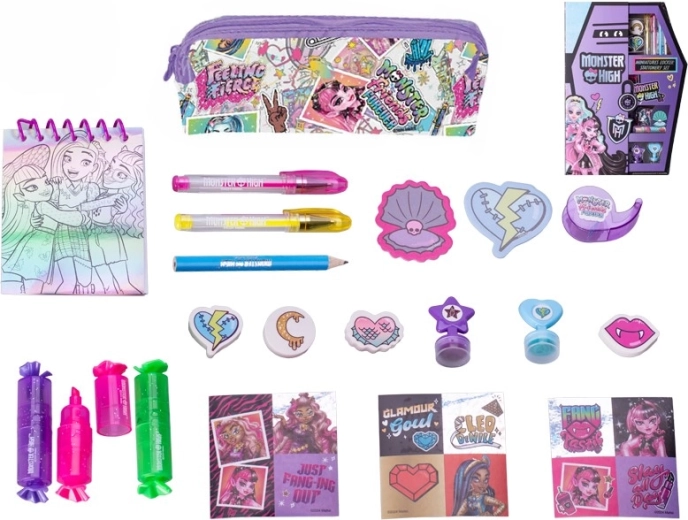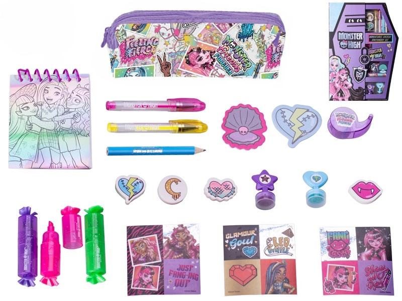 crayons de couleur, feutres, crayons à papier, autocollants avec personnages Monster High
