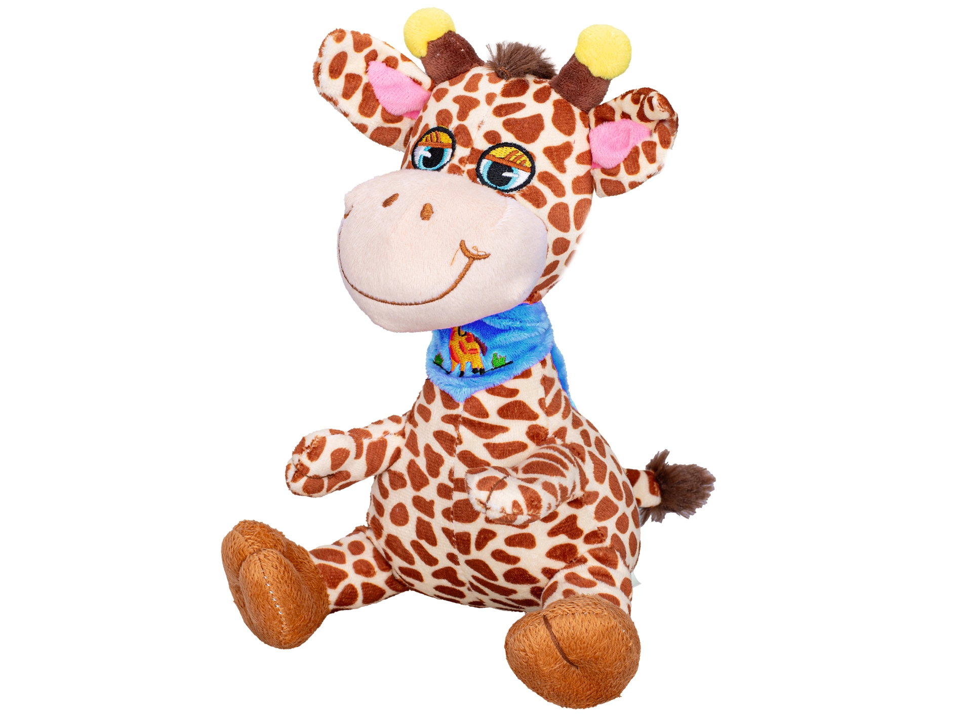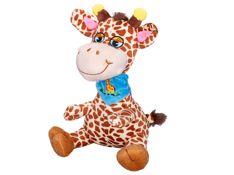Adorable girafe en peluche de 20 cm, idéale comme premier jouet pour les tout-petits. Elle est fabriquée en peluche douce et moelleuse, arbore un sourire joyeux et un design assis stable. Disponible en deux variantes avec foulard – bleu ou rose – pour un choix facile selon les préférences. Convient dès la naissance et parfaite pour les câlins comme pour les voyages.