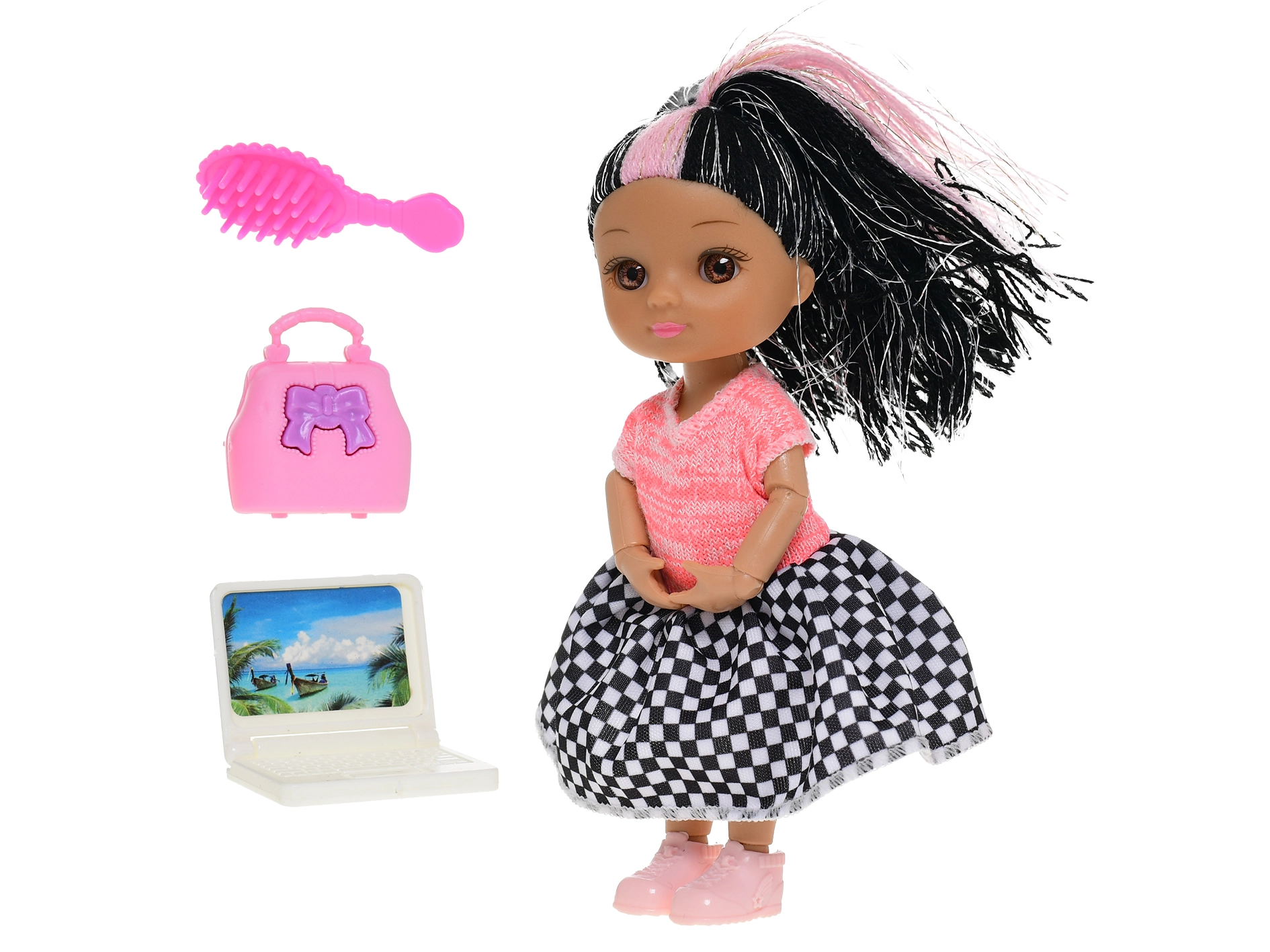 Adorable poupée de 15,5 cm, le compagnon idéal pour les petites princesses en voyage comme à la maison. Grâce à sa taille compacte, les enfants l’emportent facilement partout. Disponible en deux variantes de couleur – vert et rose – et livrée avec des accessoires pour encore plus de plaisir. Jouer avec la poupée stimule la créativité, l’imagination et développe la motricité fine. Convient aux enfants à partir de 3 ans.