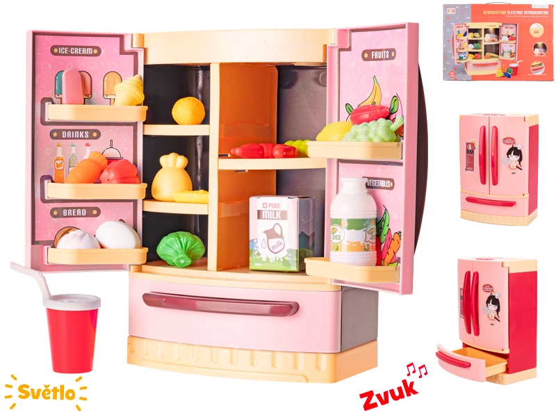 Ce réfrigérateur pour enfants de couleur rouge offre une expérience authentique inspirée du monde des adultes. Grâce à ses portes ouvrantes et à ses effets lumineux et sonores interactifs, les enfants peuvent s’exercer de manière ludique aux situations du quotidien – rangement des aliments, tri des courses et organisation dans la cuisine.