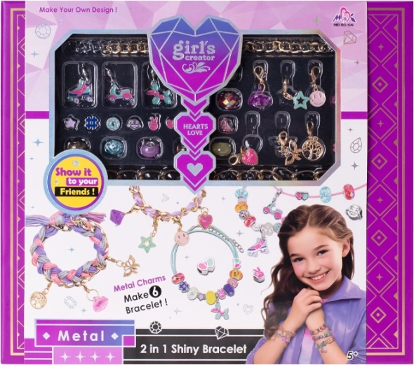 Créez vos propres bijoux originaux avec ce kit de fabrication de bracelets, qui comprend de quoi réaliser 6 bracelets ainsi que des breloques métalliques stylées représentant des smileys, des cœurs, des rollers, un scooter et d’autres motifs. Cette activité développe la motricité fine, la patience et la créativité. Le tout est rangé dans une boîte cadeau pratique, idéale comme cadeau pour les petites coquettes et les enfants créatifs à partir de 5 ans.