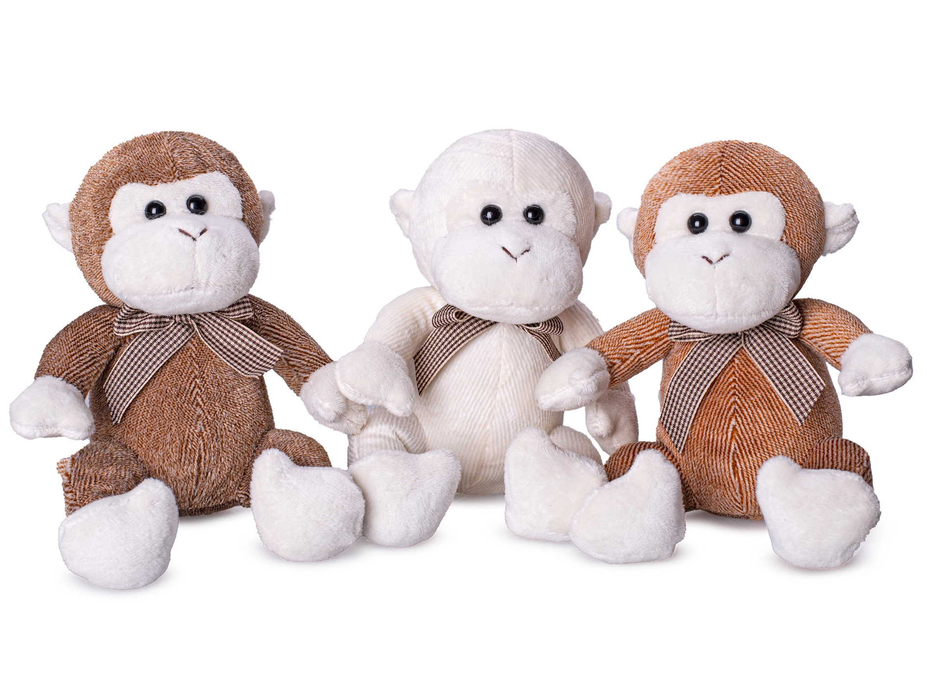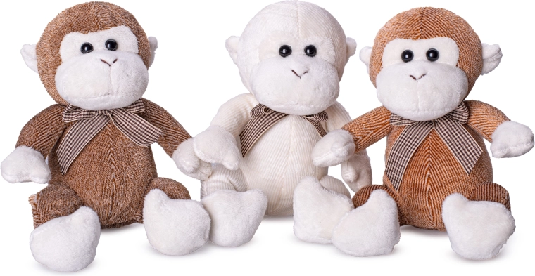 Choix de trois couleurs stylées – beige, brun clair et brun foncé – chacune ornée d’un nœud élégant qui apporte du charme au jouet. Le singe est emballé en boîte, prêt à offrir pour un anniversaire, Noël ou simplement pour faire plaisir.