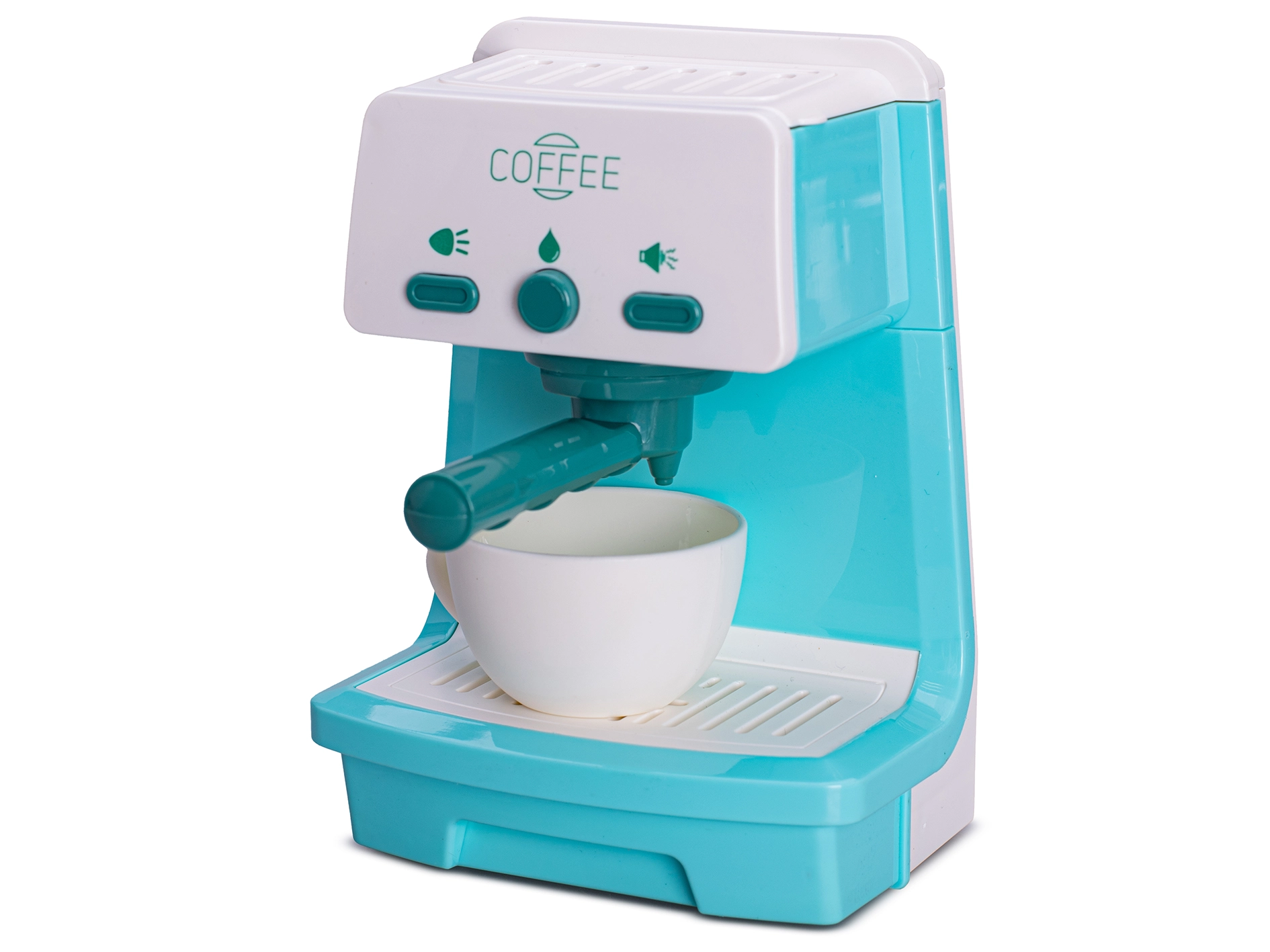 Le coffret comprend également un gobelet à café, afin que les enfants puissent immédiatement commencer à « servir » leurs boissons préférées pour eux-mêmes et leurs amis. La machine est fabriquée en plastique de qualité, elle est robuste et convient aux enfants à partir de 3 ans.