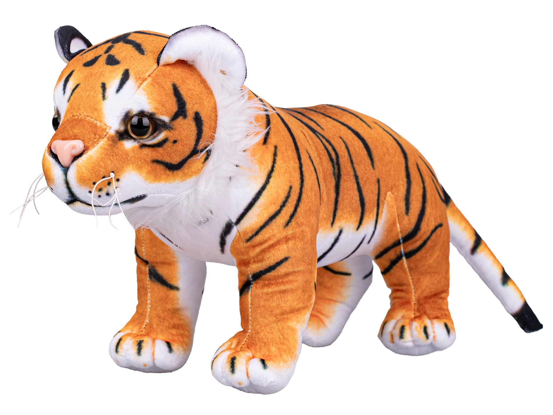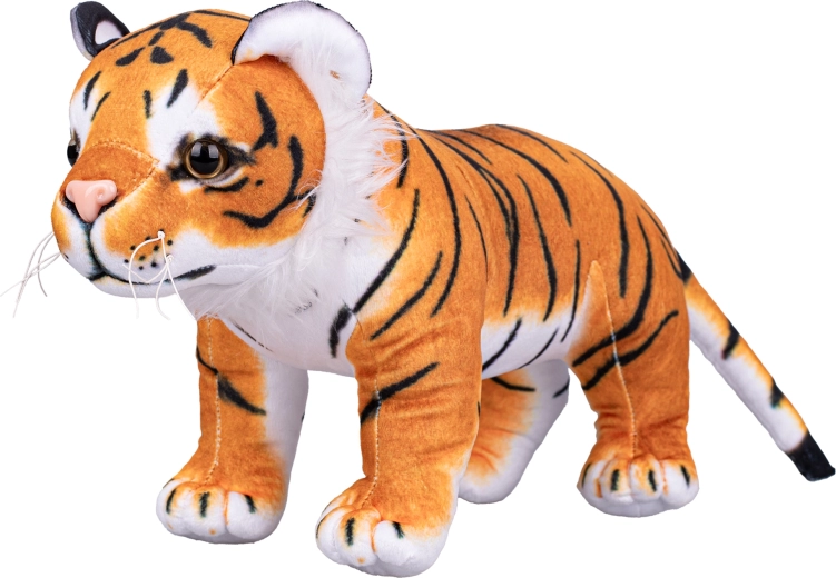 Adorable tigre du Bengale en peluche de 35 cm, un compagnon tout doux pour les tout-petits dès la naissance. Il offre une apparence réaliste, un matériau moelleux pour des caresses douces et une position debout, ce qui le rend idéal pour les câlins comme pour la décoration de la chambre d’enfant. Sa conception sûre favorise le développement sensoriel et l’imagination des enfants.