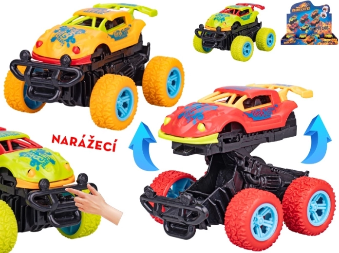 La voiture pare-chocs Roadblasters de 9 cm offre aux enfants un divertissement dynamique et le développement de la motricité. Grâce à son mécanisme à inertie, elle avance après avoir été lancée et, en cas de choc, revient automatiquement en arrière. Sa construction en plastique robuste garantit solidité et longue durée de vie. Disponibles en 2 types de carrosserie et 3 couleurs vives.