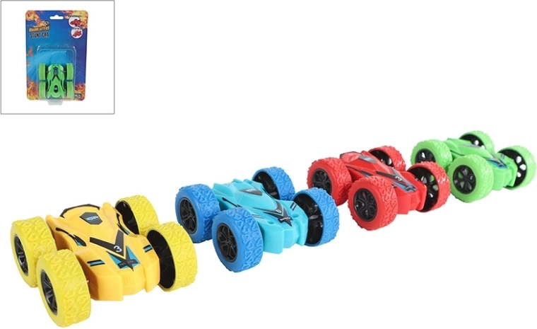 La mini voiture cascade Roadblasters offre un divertissement d’action rapide sans piles. Grâce au mécanisme à inertie, elle réalise facilement des figures flip-over à 180° et, grâce à son plastique résistant, elle supporte même un jeu intensif. Son format compact de 7,5 cm est idéal à la maison comme en déplacement, disponible en 4 couleurs vives.