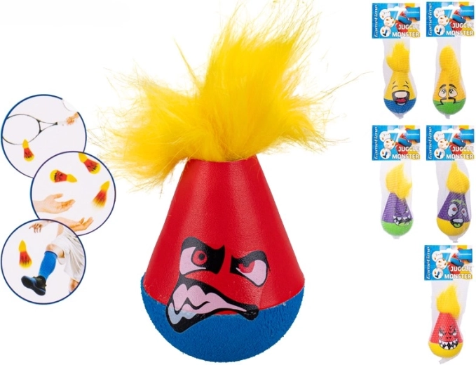 La balle est disponible en six variantes amusantes : rouge souriant, rouge fâché, avec moustache, souriant, violet étonné et violet souriant. Chaque « monstre » a son propre caractère, ce qui permet aux enfants de choisir facilement leur compagnon préféré pour lancer et jongler. Emballage en filet pour faciliter le transport et le rangement.