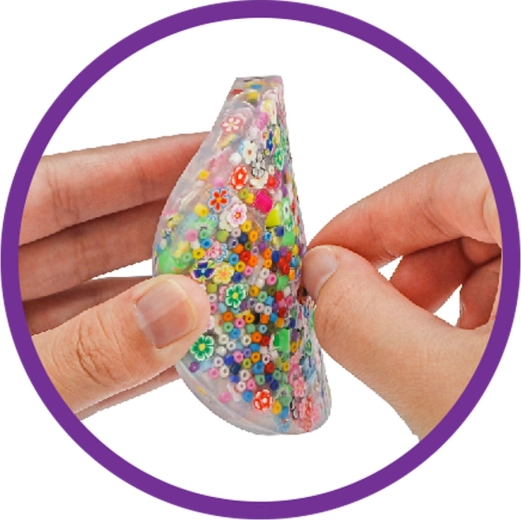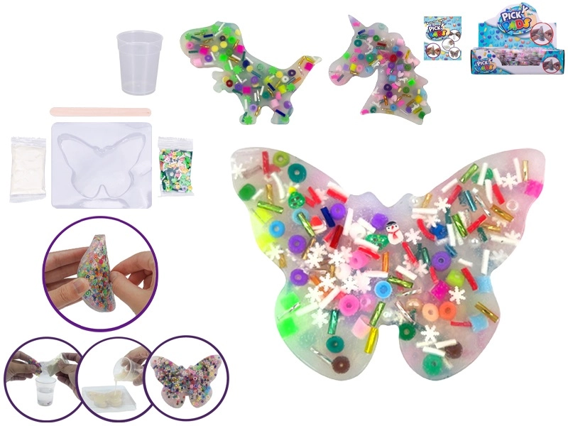 Avec ce kit, les enfants peuvent concevoir et fabriquer un dessous en gel exactement selon leur imagination. La procédure est simple : il suffit de mélanger de l’eau avec la poudre fournie, d’ajouter des perles, de verser dans un moule et en environ 30 minutes, le dessous est prêt. Grâce aux six moules différents, on obtient des formes ludiques, idéales aussi comme petit cadeau.