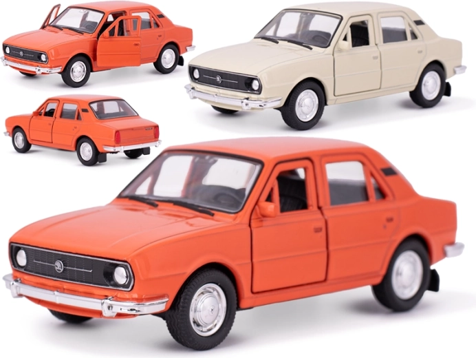 Modèle métallique détaillé de la voiture légendaire Škoda 105L (1976) de la marque Welly, idéal pour les collectionneurs comme pour les enfants. Il offre des détails authentiques, une longueur compacte de 12 cm et une fonction à rétrofriction pour une conduite ludique. Sa combinaison résistante de métal et d’éléments en plastique, ses deux finitions colorées et son emballage cadeau en boîte en font un présent idéal pour les amateurs de voitures classiques.