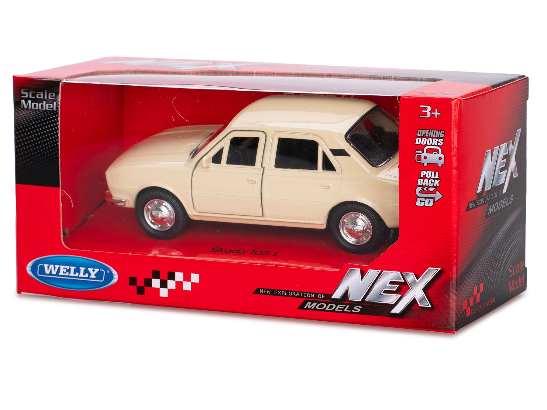 Profitez d’un morceau d’histoire automobile avec le modèle Škoda 105L 1976 de Welly. La construction en métal avec des détails en plastique reproduit fidèlement les lignes et proportions typiques du véhicule, ce qui rend le modèle attrayant pour les collectionneurs comme pour les jeunes passionnés d’automobiles. La pratique fonction à rétrofriction ajoute à la jouabilité – il suffit de tirer vers l’arrière et la voiture part vers l’avant.