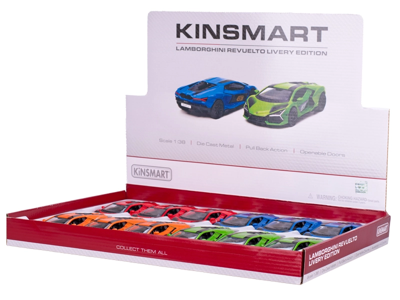 Découvrez un modèle métallique soigneusement réalisé de la voiture de sport Lamborghini Revuelto, qui reproduit fidèlement les lignes et le caractère du véritable supersport. Grâce à l’échelle 1:38 et à sa longueur de 13 cm, il s’illustre parfaitement sur une étagère comme sur un bureau et séduira tout fan de voitures rapides.