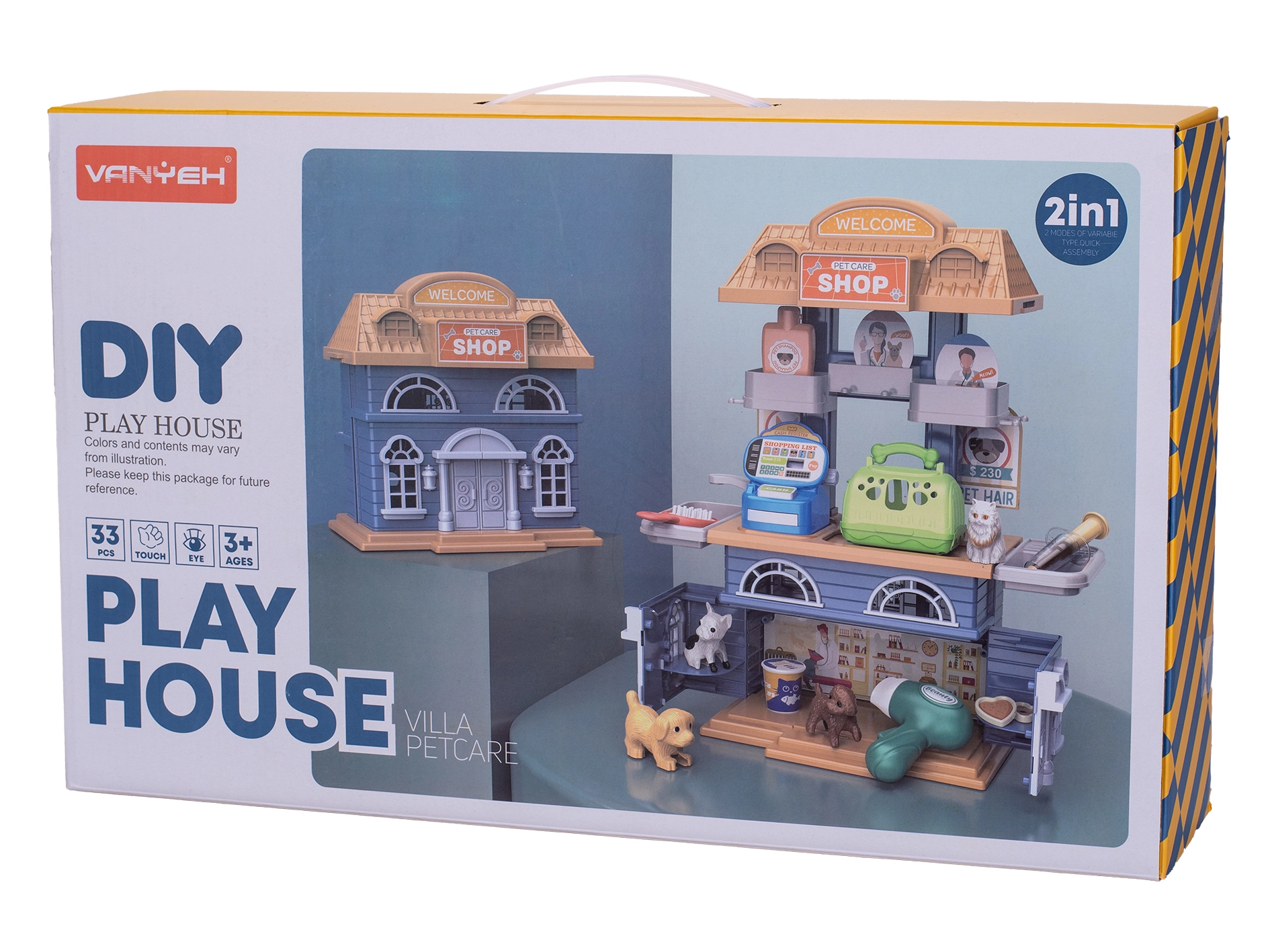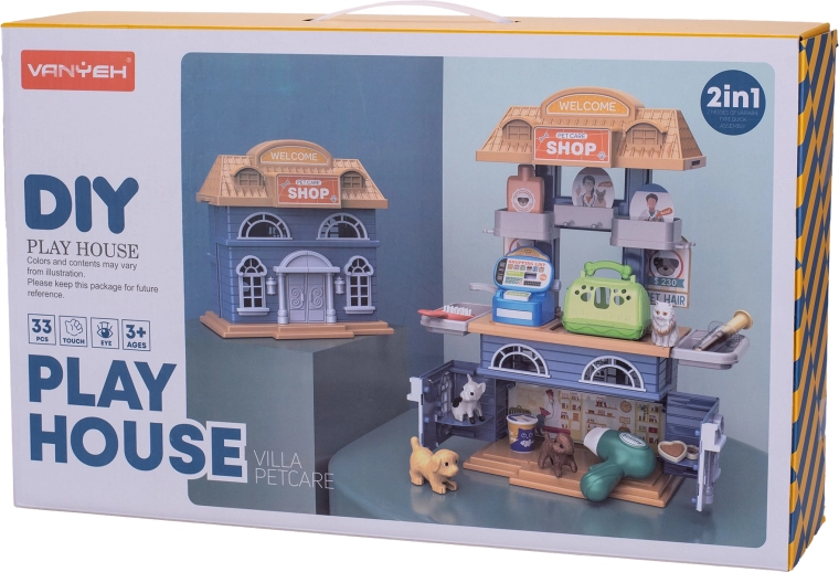 Ce jouet polyvalent réunit deux univers de jeu dans un seul coffret. Les enfants peuvent endosser le rôle de soigneur d’animaux ou de vendeur en boutique, tout en développant la communication, l’imagination et la motricité fine. Grâce à une construction robuste en plastique de qualité et à un rangement clair dans la boîte, l’ensemble est idéal à la maison comme en déplacement.