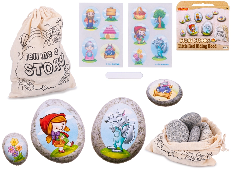 - 10 galets, autocollants sur le thème du Petit Chaperon rouge