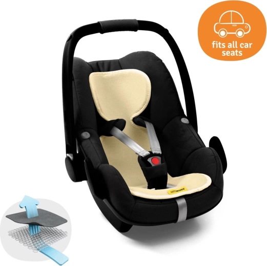 Insert respirant AeroMoov pour sièges auto 0–13 kg garantit le confort de votre bébé toute l’année. Grâce à la structure 3D en nid d’abeille, il assure une circulation d’air maximale, réduit la transpiration et maintient une température corporelle agréable. L’insert est doux et agréable au toucher et sa face extérieure est en coton biologique, lavable à 40 °C.