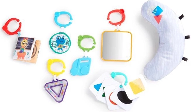 • 7 jouets amovibles dont le piano Magic Touch et un coussin pour un temps sur le ventre confortable.