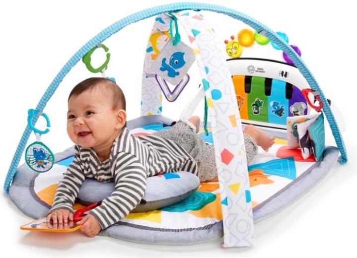 Profitez de moments ludiques avec le tapis d’éveil 4-en-1 Kickin' Tunes de BABY EINSTEIN, qui évolue avec votre bébé. Le piano Magic Touch interactif réagit au simple toucher du doigt ou aux coups de pied, sans boutons, propose plus de 70 mélodies et sons et, avec 7 jouets amovibles, favorise le développement sensoriel, la motricité fine et globale, ainsi que le plaisir en position allongée sur le dos, pendant le temps sur le ventre, en position assise et lors de jeux hors du tapis.