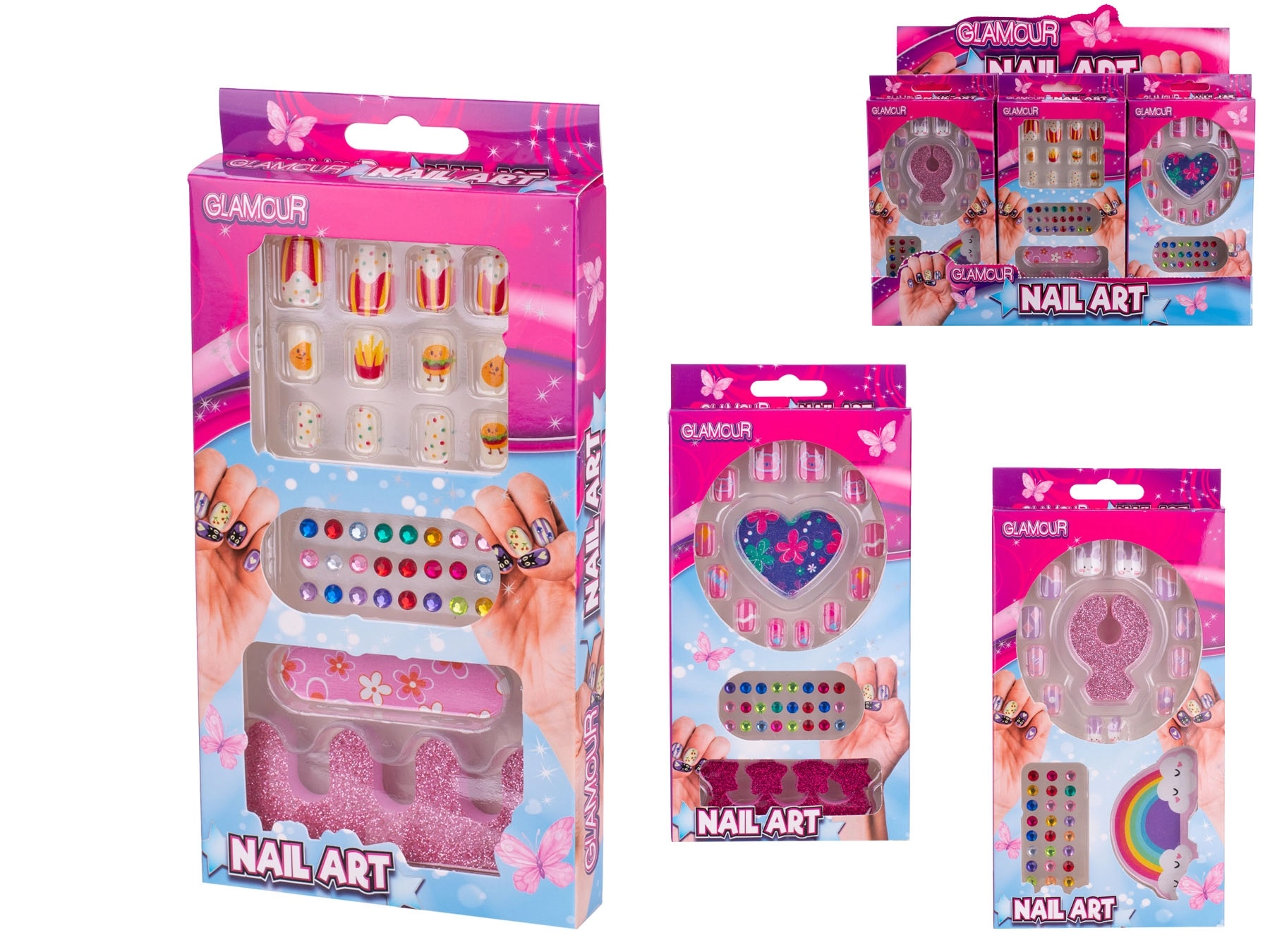 Le coffret est disponible en trois designs ludiques – avec des motifs nourriture, cœurs et arc-en-ciel. Grâce à une application simple sans vernis, les enfants peuvent essayer différents styles en toute sécurité et développer leur imagination. L’emballage compact se range et se transporte facilement, idéal pour les voyages, les visites et les fêtes d’enfants.