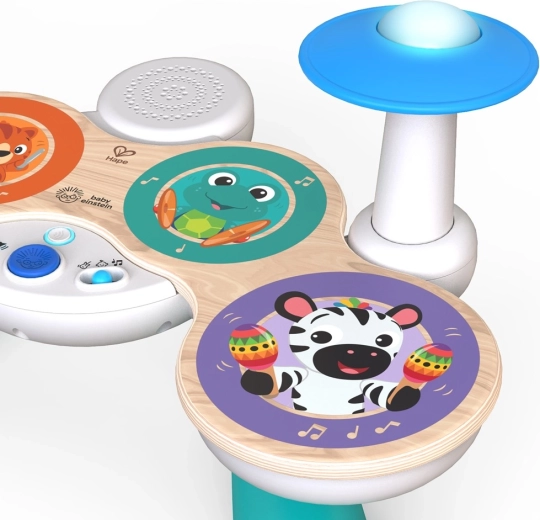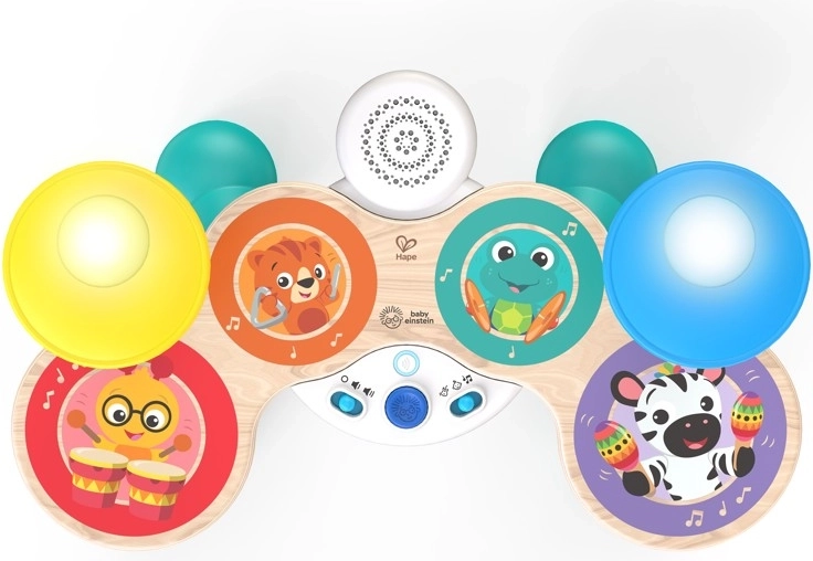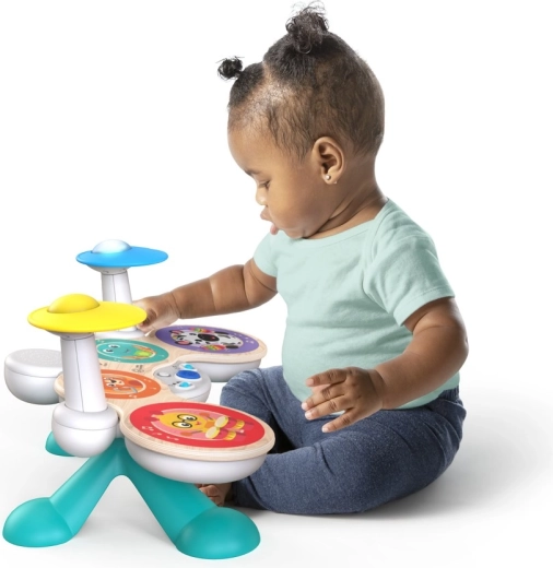 La batterie pour enfants BABY EINSTEIN x HAPE Together in Tune propose un jeu intelligent pour les plus petits. Son look bois et sa conception durable sont complétés par la technologie primée Magic Touch, grâce à laquelle même une légère pression sur les surfaces illustrées déclenche des sons de batterie authentiques. Avec la connexion sans fil, les enfants peuvent jouer en solo ou ensemble avec le piano et la guitare de la même série pour créer un petit groupe à la maison.