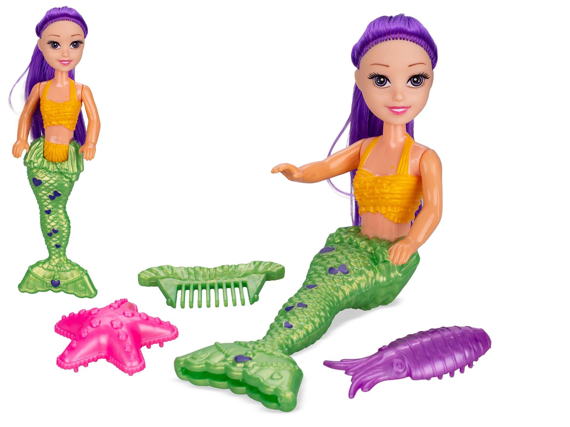 Plongez dans un monde de fantaisie avec la poupée Sirène Destination Deep. Sa queue scintillante et ses longs cheveux inspirent d’innombrables histoires, tandis que son format compact de 17 cm en fait un jouet idéal à la maison comme en voyage.