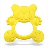 Anneau de dentition en silicone jaune avec anneau facile à tenir, idéal pour mâchouiller en douceur et jouer.