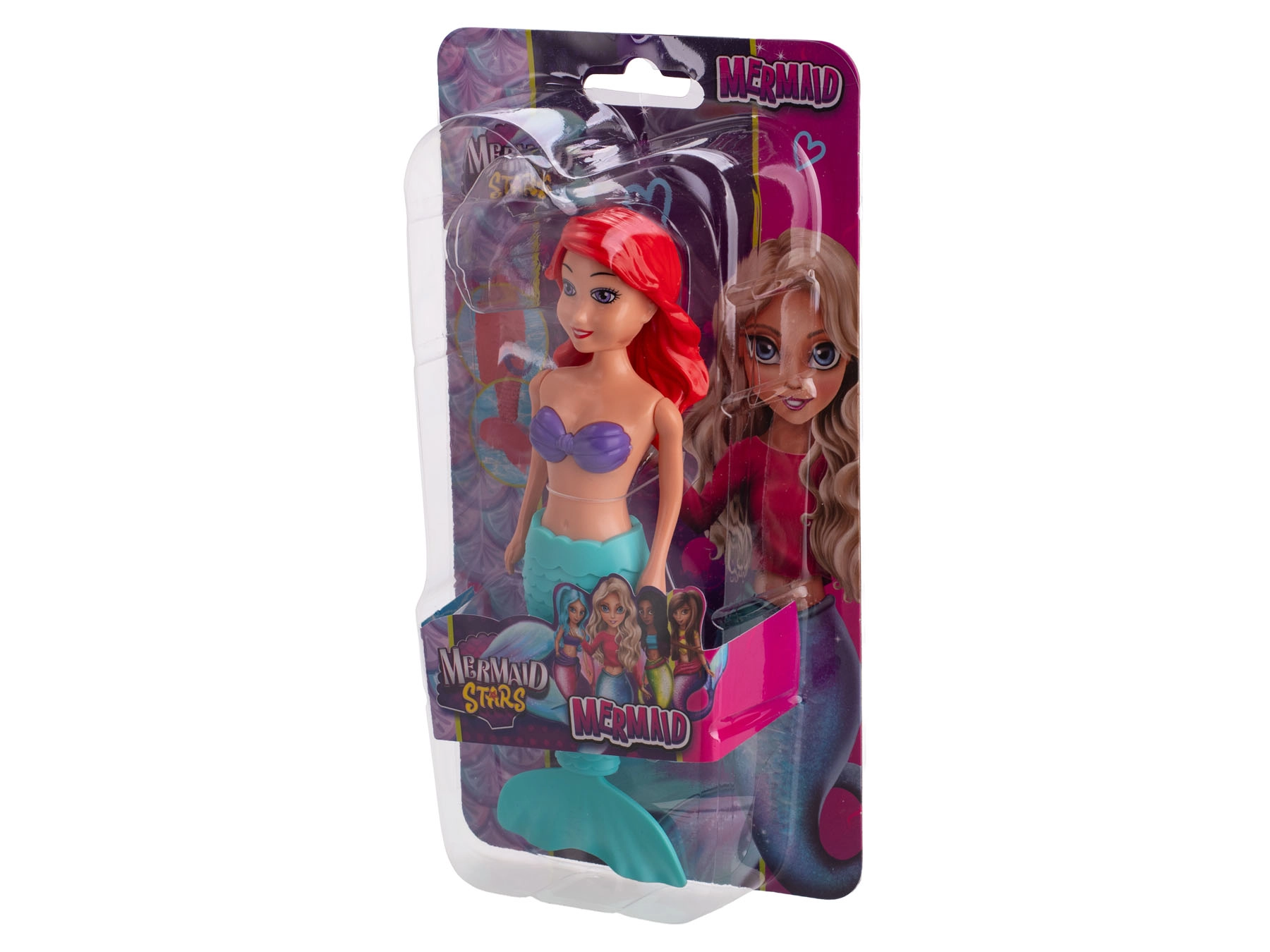 Choisissez parmi trois variantes de cheveux – roux, noirs ou blonds – et différentes combinaisons de couleurs de nageoires (violet/orange, violet/bleu, orange/bleu). La poupée est fabriquée en matière plastique résistante, ce qui lui permet de supporter le jeu quotidien et le contact avec l’eau.