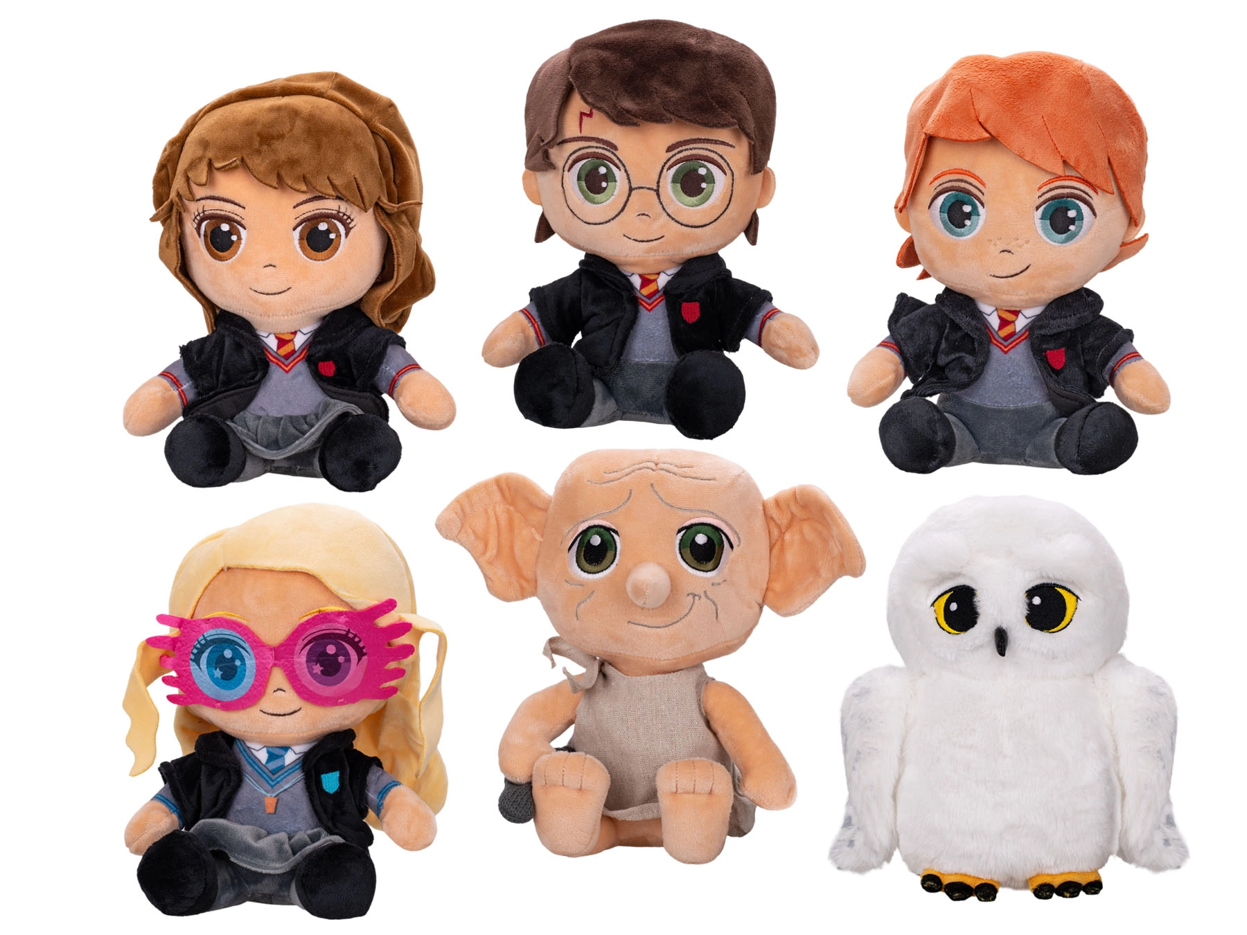 Découvrez la magie du monde de HARRY POTTER avec une adorable collection de peluches assises de 25 cm. Chaque personnage est fabriqué en peluche douce, agréable au toucher et sûre pour les enfants dès la naissance. Choisissez parmi les personnages préférés : Harry Potter, Hermione Granger, Ron Weasley, Luna Lovegood, Dobby et la chouette Hedwige – un cadeau idéal pour les petits et grands fans de Poudlard.